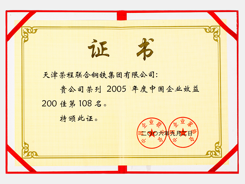 榮列2005年度中國(guó)企業(yè)效益200佳第108名